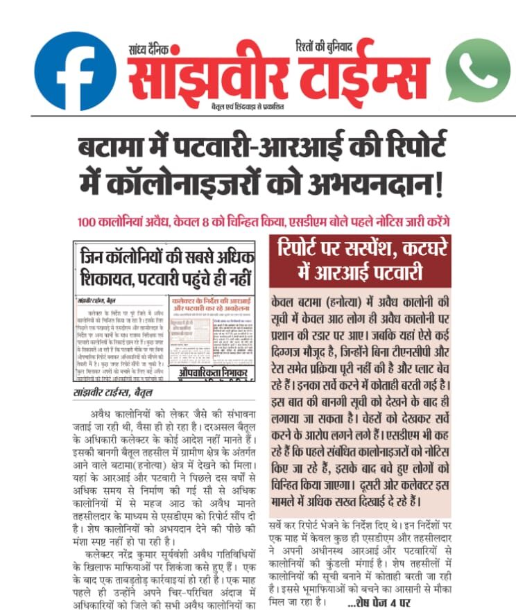 Betul Avaidh Colony News : मिलीभगत ने दिया कालोनियां बसाने का मौका