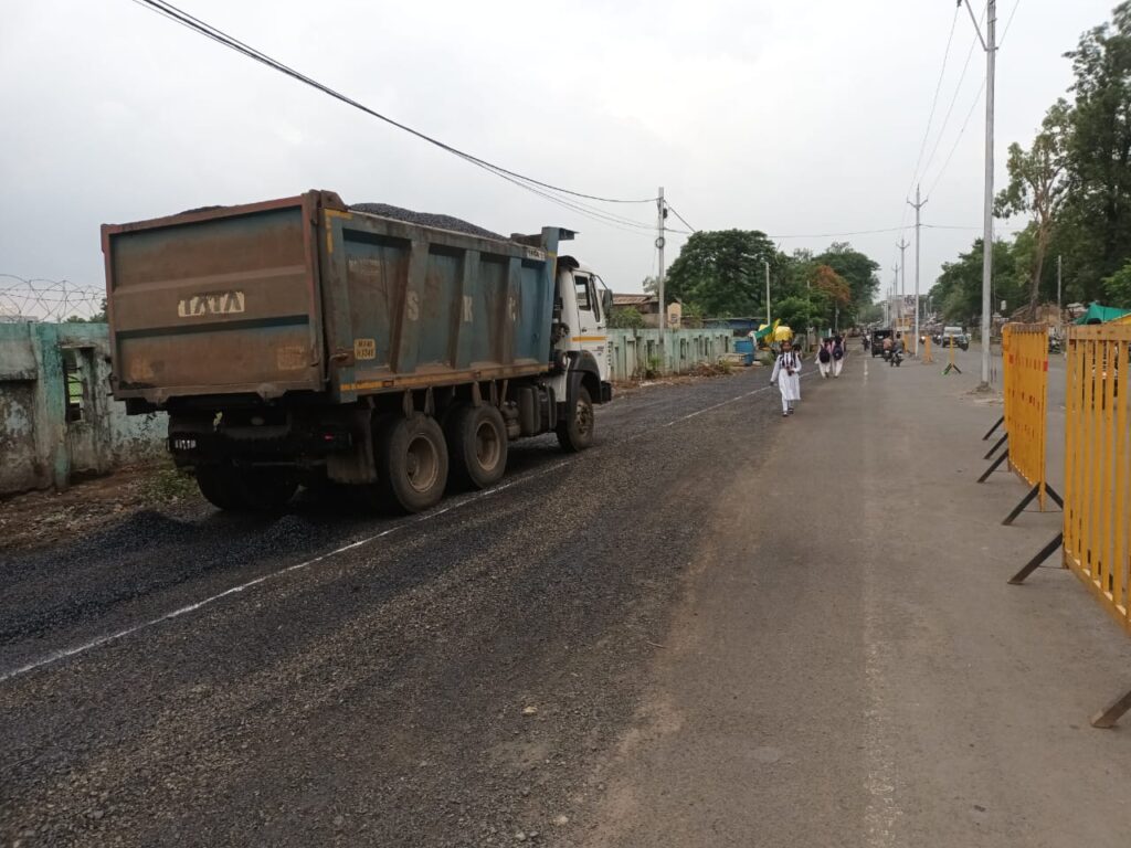 बैतूल। लंबी कवायद और ब्रेक के बाद आखिर शनिवार को कोठीबाजार के मुल्ला पेट्रोल पंप से लल्ली चौक तक बनने वाली सड़क का डामरीकरण कार्य शुरू हो गया है। पहले संभावना जताई जा रही थी कि बारिश के कारण डामरीकरण नहीं होगा। कुछ लोग डामरीकरण के कार्य में विलेन की भूमिका निभा रहे थे, लेकिन ठेकेदार के संयुक्त प्रयासों से शनिवार से डामरीकरण का कार्य शुरू होने से लोगों को राहत मिलेगी। लगभग 3 माह से मुल्ला पेट्रोल पंप से थाना चौक तक बनने वाले टू-लेन का लल्ली चौक तक का काम बंद पड़ा हुआ है। इसके पीछे कई तरह के पेंच सामने आ रहे थे, नगरपालिका ठेकेदार पर ठीकरा फोड़ रही थी। जबकि ठेकेदार नगरपालिका पर काम में सहयोग न करने के आरोप लगाते रहे।