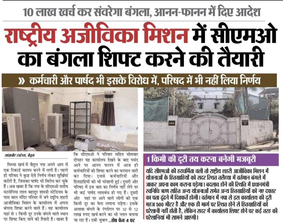Betul Samachar: आजीविका मिशन के ऑफिस में बंगला शिफ्ट करने का चौतरफा विरोध