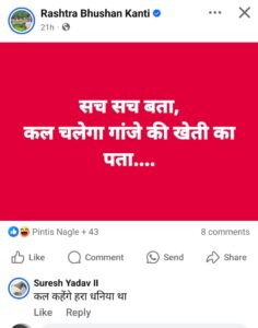 पुलिस यदि दावा कर रही है कि केवल अफवाह फैलाई जा रही है कि छूरी के जिस खेत में गांजा मिलने की बात कहीं जा रही है। यह केवल भ्रम है। यहां केवल गाजर घास ही मिले हैं। यदि पुलिस ने वीडियोग्राफी और फोटोग्राफी कराई है तो इसे मीडिया को उपलब्ध कराना चाहिए या प्रेसनोट जारी कर वस्तुस्थिति स्पष्ट करना चाहिए, लेकिन पुलिस ने 24 घंटे बाद भी ऐसा नहीं किया। यही वजह है कि लोगों की शंका और बढ़ रही है। सोशल मीडिया पर लगातार पुलिस के खिलाफ लेनदेने और कई कमेंट्स किए जा रहे हैं। इससे पुलिस के साथ भाजपा की छवि खराब हो रही हैं।