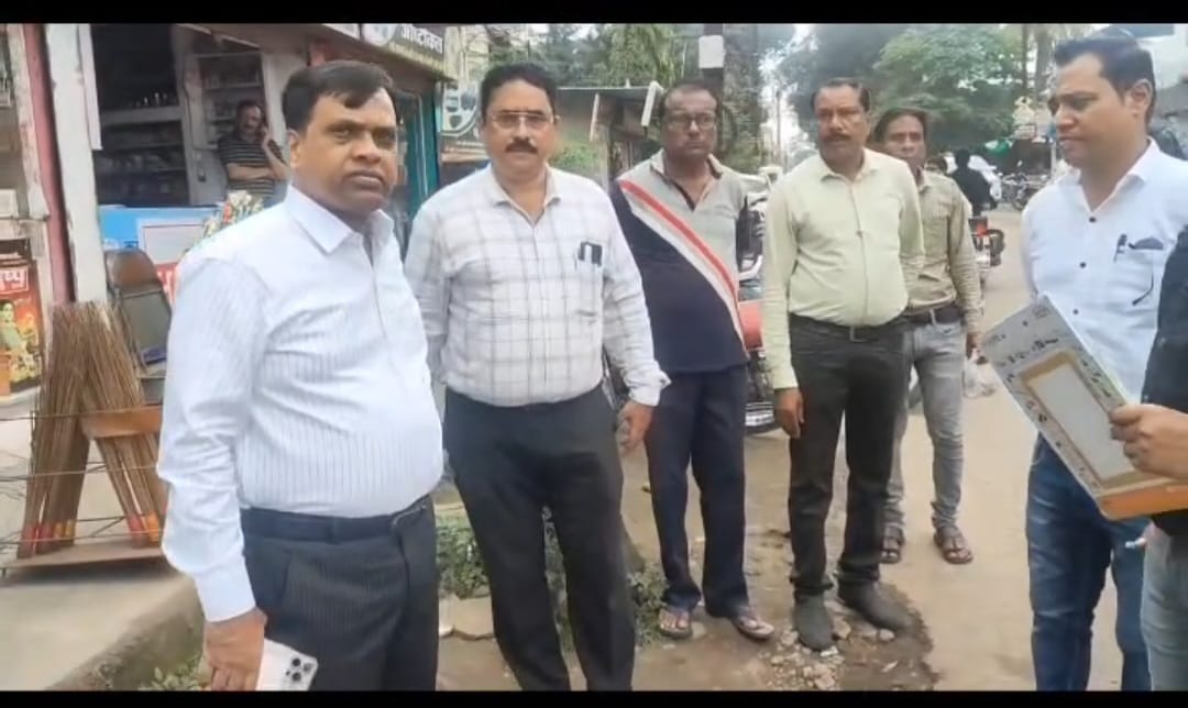 कारगिल चौक से सोनाघाटी तक मार्ग का किया निरीक्षण, नपा ने की चूने की मार्किंग