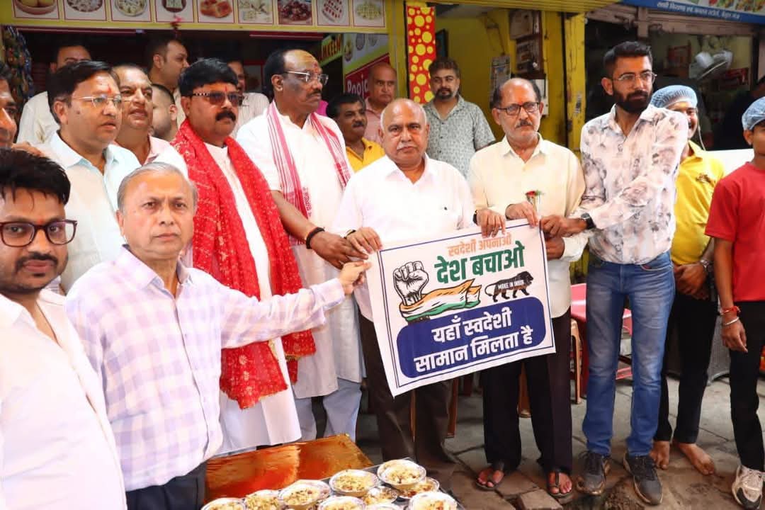 बाजार में घुमकर व्यापारियों से की चर्चा, मिठाई भी खिलाई आम लोगों से स्वदेशी वस्तु खरीदने की अपील