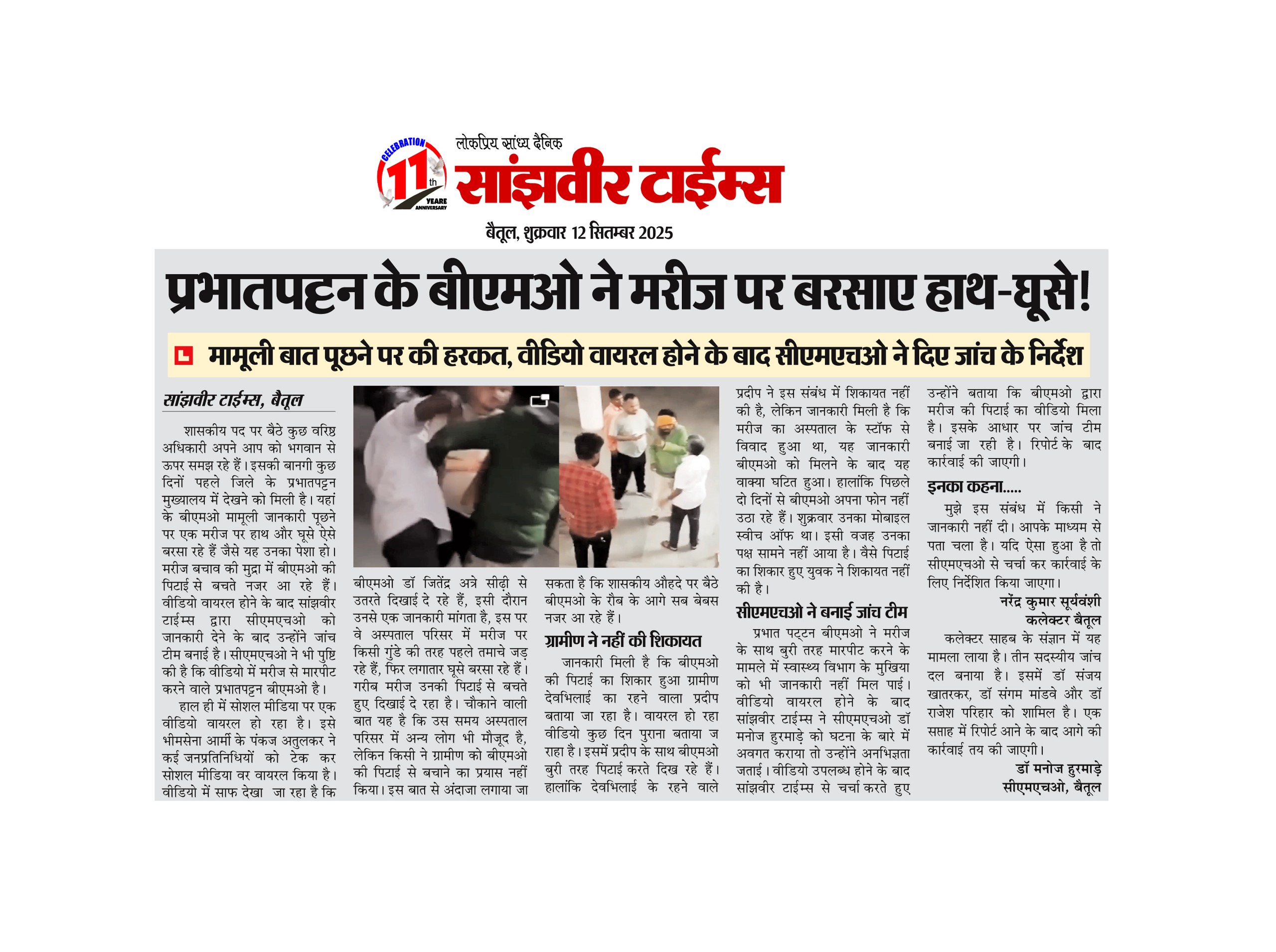 Betul News: Investigation into assault on patient complete, refrain from making it public