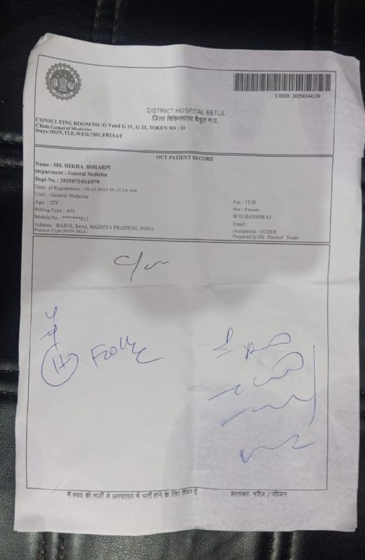 दरअसल पूरा घटनाक्रम 28 अक्टूबर के बताया जा रहा है। ग्राम बारहवीं की महिला मरीज रेखा को तबियत खराब होने के बाद परिजन सरकारी अस्पताल लेकर आये थे। पर्ची बनने के बाद जब डॉक्टर को दिखाया गया तो डॉक्टर ने दवाइयां लिख दी। परिजनों का कहना है कि जिस लिखावट में दवाइयां लिखी गई थी, उस लिखावट को अस्प्ताल के मेडिकल स्टोर कर्मचारी भी नहीं समझ पाए अस्पताल के बाहर स्तिथ मेडिकल स्टोर संचालक भी इसे देख हैरान रह गए, और दवाइयां नहीं मिल पाई। दोबारा अस्पताल पहुंचे, लेकिन उक्त डॉक्टर भी जा चुके थे। मजबूरी में निजी अस्पताल में मरीज को दिखाकर दवाइयां लेना पड़ा। परिजनों का कहना है कि डॉक्टरों को यह समझना चाहिए कि उनकी एक अस्पष्ट लिखावट मरीज की जान पर भारी पड़ सकती है। कई बार गलत दवा मिलने से स्थिति गंभीर हो सकती है। ऐसे में साफ-सुथरी लिखावट या कंप्यूटराइज्ड पर्ची अनिवार्य की जानी चाहिए।