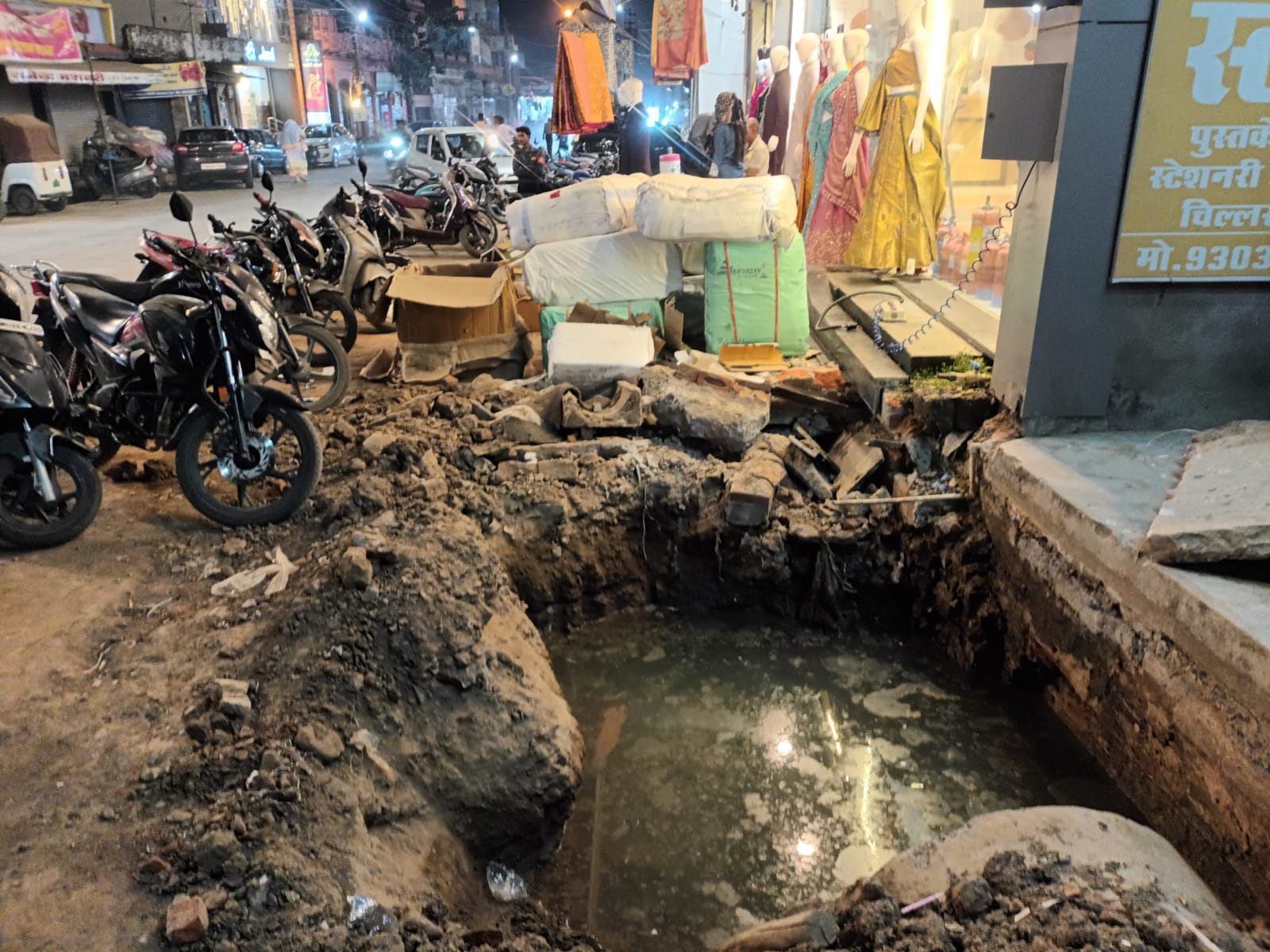 खुले गड्ढों में जमा हो रहा गंदा पानी, दुकानों में खड़ा रहना मुश्किल, राहगीर हो रहे चोटिल