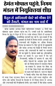 तीन दिन पहले जब राज्य सरकार और भाजपा संगठन ने आयोगों में नियुक्तियां शुरू की तो मंगल सिंह को राज्य अनुसूचित जनजातीय आयोग का सदस्य बनाकर राज्यमंत्री का दर्जा दिया। इससे पहले मंगल सिंह को जिला पंचायत सदस्य रहने के दौरान एक बार जिला पंचायत अध्यक्ष बार फिर सज्जन सिंह उइके के निधन के बाद उपचुनाव में घोड़ाडोंगरी से सीधे विधानसभा पहुंचने का भी अवसर मिला है।